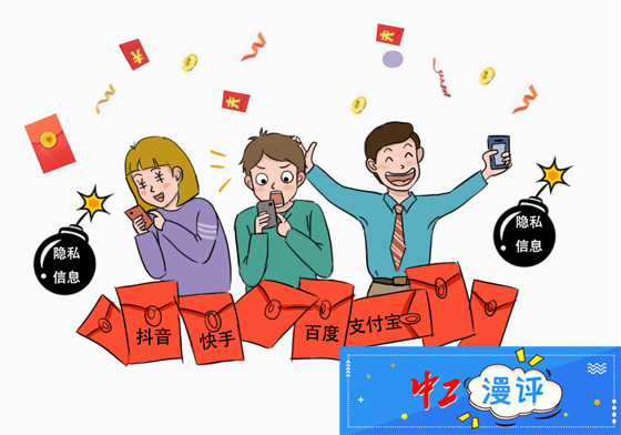 近几年的春节,抢红包成为新“年俗”。随着抖音、快手等互联网平台的加入,红包的种类日趋多元化,形式琳琅满目。“红包大战”背后,实则是互联网巨头的“用户大战”“流量大战”,这在一定程度上说明中国互联网经济已经进入了一个更高的阶段。但在这场“没有硝烟的战争”中,发放红包的互联网平台在收割用户流量的同时,也存在违规收集用户隐私信息等诸多安全隐患。大家抢得热闹,也要时刻绷紧隐私安全这根弦,莫让抢来的红包成了一颗躺在手机里的“定时炸弹”,待到隐私泄露才追悔莫及。