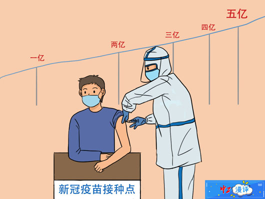 从1亿剂次到突破5亿剂次,新冠疫苗每增加1亿剂次接种所用的时间不断缩短,从4亿剂次到5亿剂次的突破仅用了7天,这样的增速让人欣喜也令人惊叹。