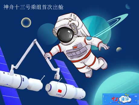 11月7日,航天员翟志刚、航天员王亚平开展神舟十三号航天员乘组第一次出舱活动,顺利完成机械臂级联装置安装工作。