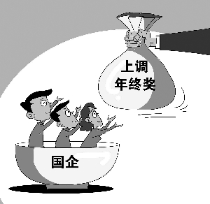 《2013企业年终奖调研报告》显示,较2012年的调研结果,仅两成受访企业下调年终奖。七成受访国企上调年终奖,比例最高。从行业来看,地产企业上调年终奖比例最高。(朱慧卿 漫画)