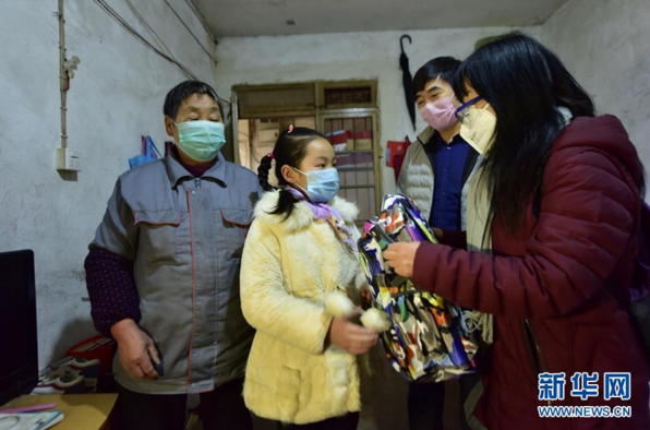 3月3日,合肥市十里庙小学三一班班主任王传华给李小苒送来书包、文具和手工材料等。
