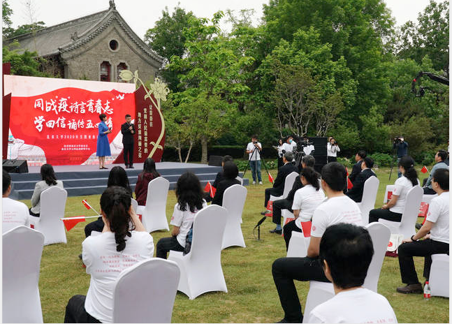 图为,5月4日,北京大学2020年五四青春诗会在北京大学静园草坪举行。图片来源:新华社。