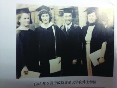1943年5月,樊庆笙(右二)在威斯康星大学获得博士学位。