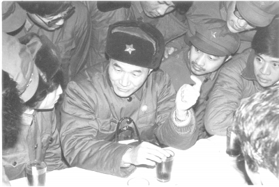 1985年1月,陈宜张(中)与同学在食堂交流探讨问题