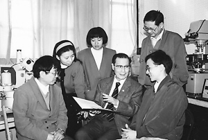 1992年,严东生在实验室与学生们交流。(科学报图片)