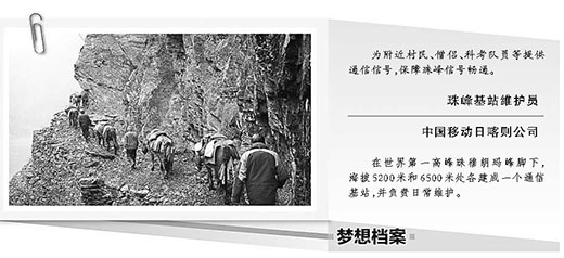 不久前,记者登上海拔5200米的珠峰大本营,实地探访将通信信号送上珠峰的人。