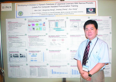 “解决发音问题,要先练听力。”张劲松据此设计了汉语语音训练软件。软件随机给出发音,学生听读,软件判断发音、对学生的跟读能力打分、纠正。每天利用这一系统练习一小时,六天后,外国学生在发音及判断上的正确率整体提升了百分之十。