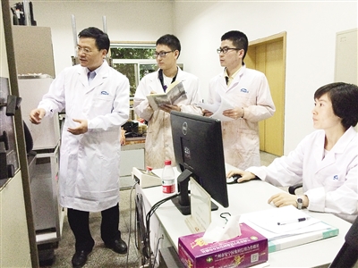 赖远明(左一)在实验室里指导研究生做实验。记者 陈发明摄.