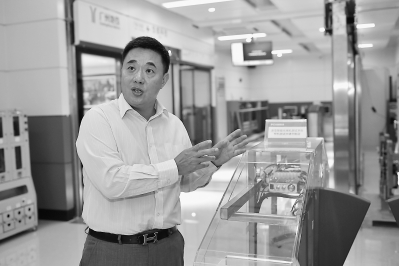 25日,刘伟在介绍公司研发的新型智能化闸机测试平台。新华社