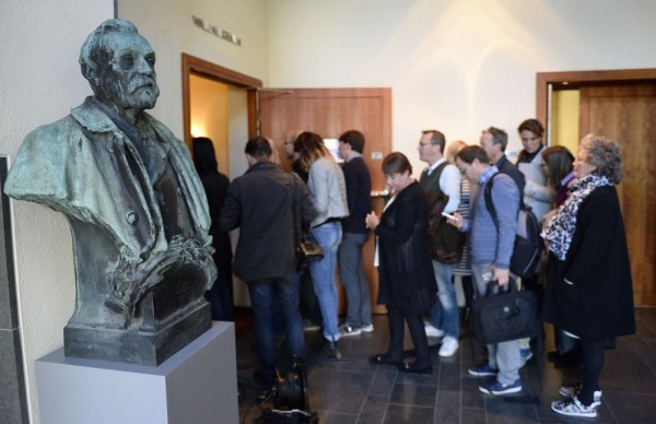 据英国卫报消息,在随后的发布会上,有记者问,屠呦呦获奖,是否是对中药的一次奖励。诺贝尔奖委员会给出的答案是否定的。该委员会称屠呦呦获奖是为了表彰她在受到中药的启发下对一种药物的寻找过程。图为记者进入发布会现场。