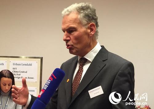人民网记者采访诺贝尔生理或医学奖评委让·安德森教授。李玫忆摄