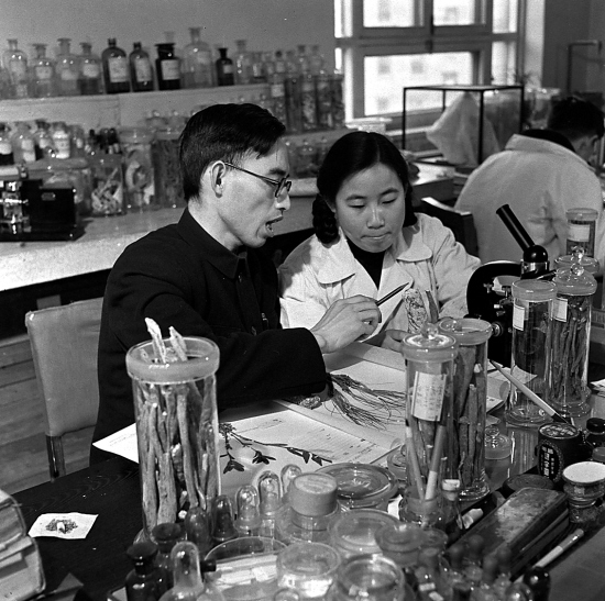 20世纪50年代,屠呦呦(前右)与老师研究中药 图/新华社