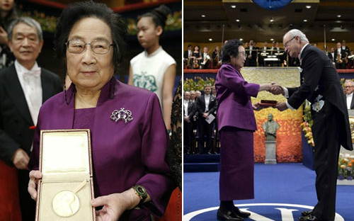 资料图:中国药学家屠呦呦获2015年诺贝尔医学奖领奖瞬间