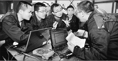 科研人员在高频等离子体风洞试验现场研究课题。余 江摄(人民视觉)