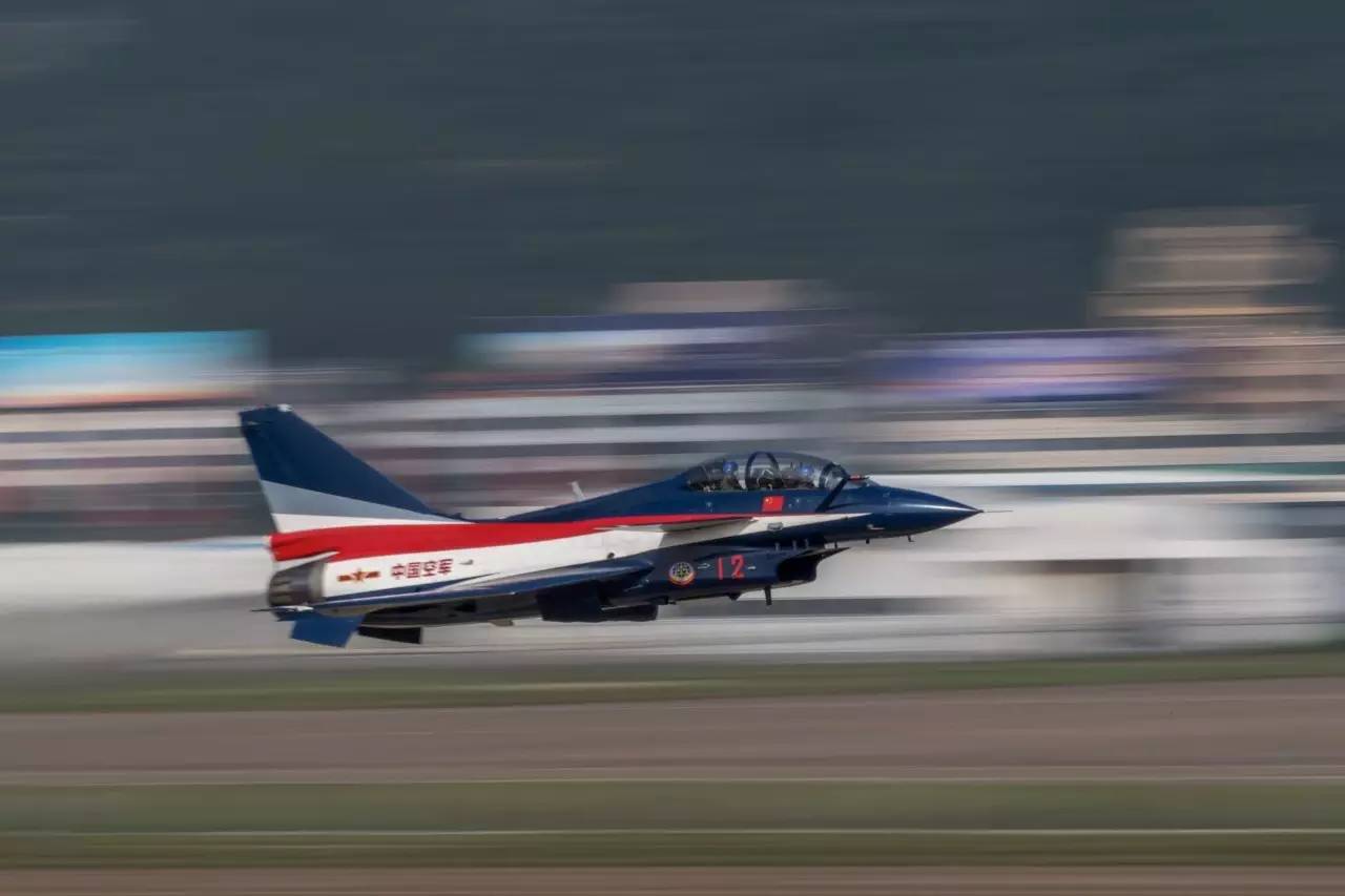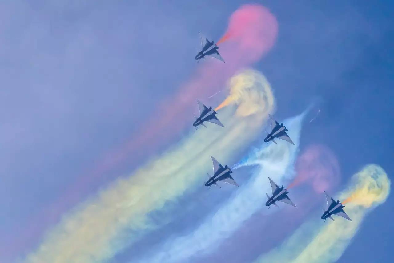 △ 2016年11月1日,在第11届珠海航展上,中国空军“八一”飞行表演队驾驶歼10战机作飞行表演。 图/视觉中国