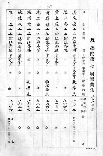 1940年7月,上海交大理学院吴文俊等毕业生名册。光明图片