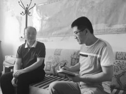 图为张晨强(左)在接受本报记者采访。