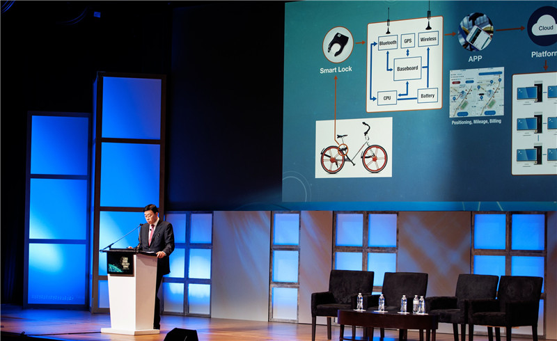 邓中翰院士在介绍“中国智造” 的共享自行车