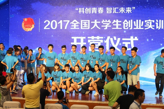 7月23日~28日,2017年全国大学生创业实训营(第一、二期)在江苏省徐州市举办。图为实训营营员在开营仪式上合影。