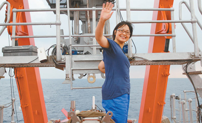 大眼睛、齐耳短发,戴着时尚的粗框眼镜,身穿碎花上衣,一副典型的江南女子的娇小身材。如果不是提前做了功课,真不敢相信这位美女科学家生于1969年,有个即将读大四的儿子,更难想象她今年刚在海上“漂”了4个多月。