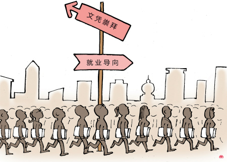 高中毕业后上职业学校,这在西方发达国家并非稀罕事。为何在中国,一些学生却宁愿上三流大学、将来就业无着,也不愿读职业学校?这种怪现象,无疑是“国情”使然:其一,与社会大环境有关,一些社会现实将职校生的尊严糟蹋得体无完肤。比如提拔、就业、落户口、评职称……凡事都拿学历当硬杠杠,职校生屡屡遭遇歧视,甚至还无资格参加“公考”,社会上谁还会拿职校生“当盘菜”?其二就是“面子”观念在作祟。囿于传统观念与惯性思维,一些人总觉得上大学才有面子,而上职业学校、将来当工人有些“丢人”。所以在过去,很少有家长和学生青睐职业教育。