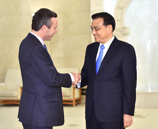 3月31日,国务院总理李克强在北京人民大会堂会见英国《金融时报》总编巴伯。新华社记者 李涛 摄