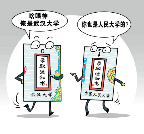 7月27日,武汉大学官方微博展示该校2015级本科录取通知书。之后,有毕业于中国人民大学的网友质疑其抄袭:武大录取通知书与人大去年的录取通知书“字体雷同,构图雷同,云水纹路雷同,字框布局雷同,水墨风格雷同”。(7月28日《南方都市报》)