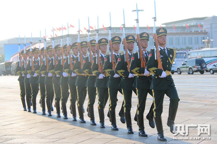 沐浴自由和平的阳光,升旗仪式护卫方队走过121步——中国人民从1894年甲午战争以来反抗外来侵略屠杀121载艰苦卓绝、愈挫愈勇的不平凡历程!