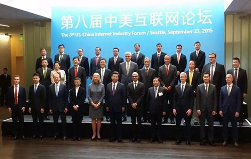 9月23日,习近平在美国西雅图出席第八届中美互联网论坛,与参加论坛的双方主要代表、中美互联网“巨头”合影。