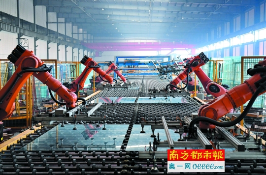 “中国玻璃城”河北沙河推进供给侧结构性改革,这是2016年11月24日拍摄的沙河市一条具有世界先进水平的自动化浮法玻璃生产线。新华社发