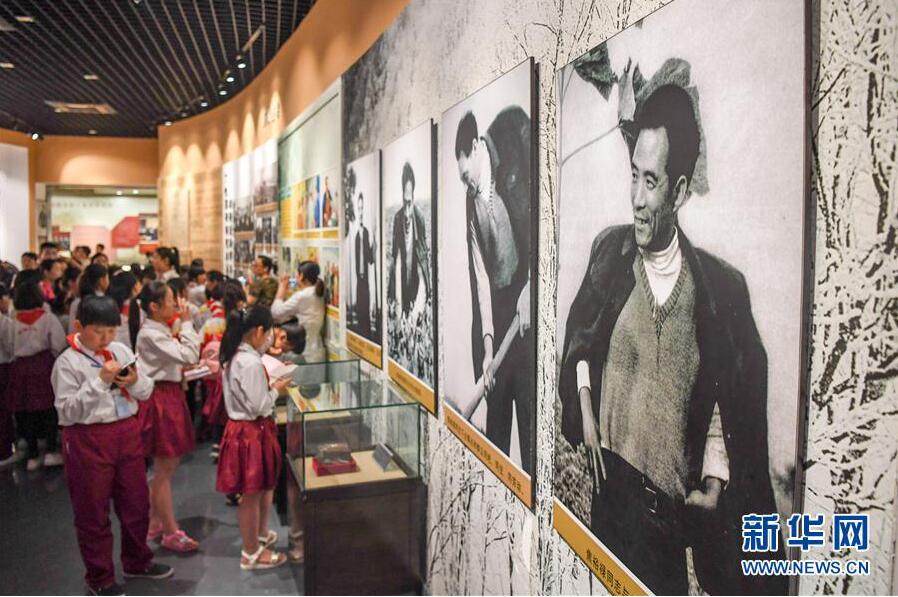 2017年5月14日,小学生在兰考县的焦裕禄纪念馆参观。当日是焦裕禄同志逝世53周年纪念日。河南省兰考县各界群众来到焦裕禄纪念园,表达他们对焦裕禄的怀念之情。 新华社记者 李博 摄