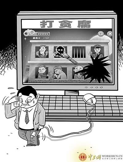 在中央重拳出击大力反腐的背景下,新媒体开发出打贪官的主题游戏,鲜活互动、寓教于乐,堪称反腐教育的一种创新。作为游戏打击“对象”的贪官们,恐怕也有几分后怕。然而,打贪腐游戏易,落实反腐行动难,虚拟世界中一番酣畅淋漓的情绪宣泄之后,要想取得反腐成效,还需在现实中勇较真、动真格,建立健全各项监督惩戒机制,真正让权力在阳光下运行,不给贪腐分子留下任何腐败空间。