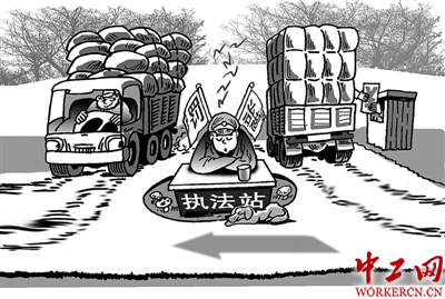 据《北京晨报》报道,为期3个月的全国公路执法专项整改工作刚刚结束,然而,在重要省道滨唐公路津冀交界处,政府部门设立的治超“官卡”门庭冷落、执法车沦为摆设,而相邻非法设立的“黑卡”却大肆收费后擅自放行,超载货车司机只要缴纳300元“通行费”就可以过卡。对于记者“为何不阻止”的提问,相关部门表示无能为力。