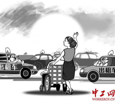 不用多说,那些拒载的出租车司机一定是嫌麻烦,来回收放轮椅耽误时间不说,有时还得下车扶乘客。如果人人都这么想,残疾人还怎么能顺利出行?平时可以少出门甚至不出门,但有病了、有事了,家里又没车,怎么办?出租车承担着一定的公共服务职能,司机如果一门心思往钱眼儿里钻,不合适。至于残疾人打车难的问题,像北京这样的大城市是有一些残疾人专用出租车的,如果提供预约服务,也许能缓解乘客的需要。