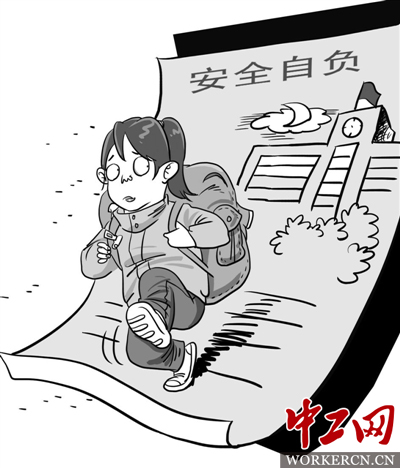 据《人民日报》报道, 近日,江西九江县二中初三学生反映,被学校强制签一份“安全协议”:上下晚自习路上出事,学校一概不负责……家长们表示,接受不了这种规避责任的做法。校方称很无奈,走读生家长要求孩子上晚自习,可安全不能让学校负责。