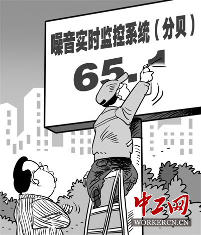 据《北京青年报》报道,近日,一块显示“噪音实时监控”、“实时噪音:65.1”的“电子显示屏”出现在湖北省恩施州来凤县街头,可这块造型酷似电子显示屏的屏幕,上面的数字“65.1”却从来没变过。有网友靠近一看发现,原来屏幕上的文字,居然都是喷绘的。该县环保部门解释称,因为真正的显示屏还没运到,所以暂时给架子盖上喷绘。