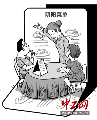 据《成都商报》报道,四川成都一家餐厅使用“阴阳菜单”,很多菜在包间内消费都比大厅贵,少则10元,多则几十元,而餐厅内没有关于同菜不同价的任何提示。该餐厅负责人解释称,包厢里的菜量普遍要大一些,而且包厢是不翻台的,加上房租贵,所以菜价和大厅不一样。目前执法部门已要求该餐厅接受调查。