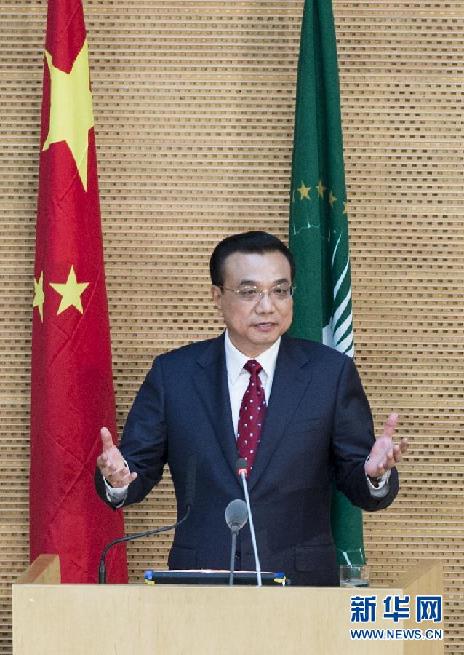 5月5日,中国国务院总理李克强在位于亚的斯亚贝巴的非洲联盟总部发表题为《开创中非合作更加美好的未来》的演讲。