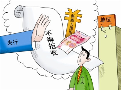 中国人民银行有关部门负责人近日就2015年版第五套人民币100元纸币流通问题答记者问。该负责人表示,新版100元纸币是国家的法定货币,以人民币支付中华人民共和国境内一切公共和私人的债务,任何单位和个人不得拒收。个人和单位在使用新版人民币的过程中如遇到问题,可向当地中国人民银行分支机构投诉,人民银行将依法予以处理。