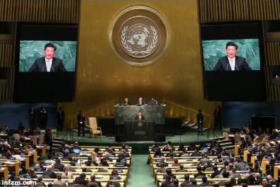 2015年9月28日,国家主席习近平在纽约联合国总部出席第70届联合国大会一般性辩论并发表题为《携手构建合作共赢新伙伴同心打造人类命运共同体》的重要讲话。(新华社记者❘庞兴雷❘摄)