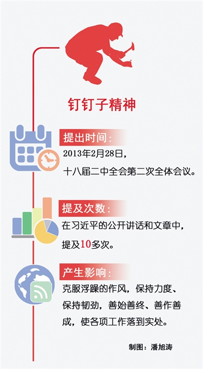 作为重要方法论,钉钉子精神被运用到了政治、经济、民生等诸多领域的工作中。