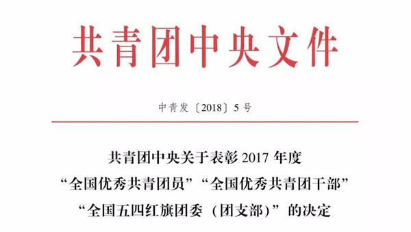 共青团中央表彰2017年度全国优秀团员