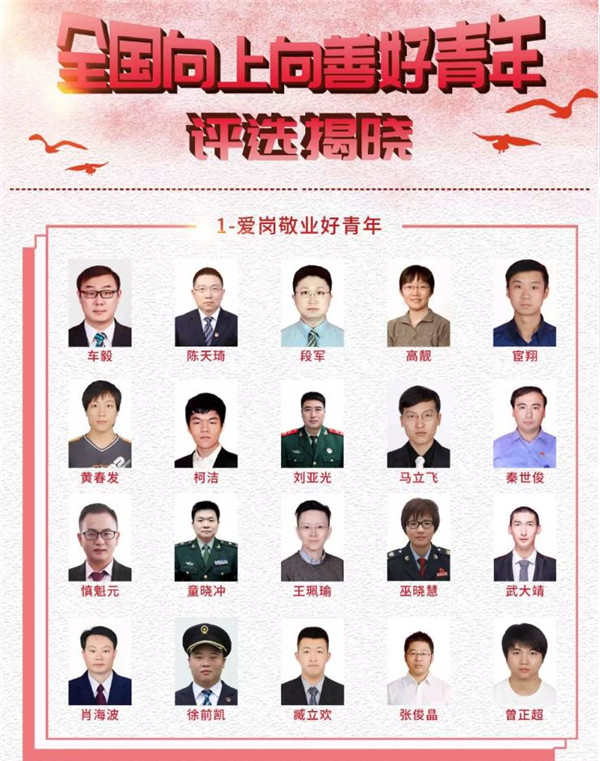 在五四青年节来临之际,由共青团中央主办的2018年“全国向上向善好青年”推选活动结果揭晓,一批新时代模范践行社会主义核心价值观的优秀青年和青年群体获此荣誉。本次活动自年初启动以来,社会各界广泛关注,广大青年踊跃参与。团中央通过组织推荐和个人自荐渠道,共收到来自全国各地、各行各业2149位好青年的推荐申请。经过集中审核和筛选,387名好青年(群体)作为候选人接受公众网络点赞和评委评审,网络参与学习、点赞量达596.4万次。活动秉着公正公平、公开透明的原则,最终推选出爱岗敬业、创新创业、诚实守信、崇义友善、孝老爱亲5类共计100名“全国向上向善好青年”和2个“全国向上向善好青年群体”。