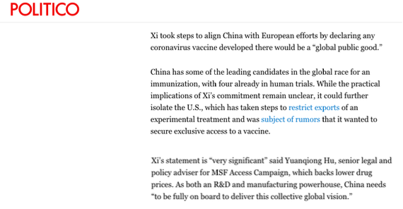 美国却一直对疫苗研发的国际合作兴趣缺如: