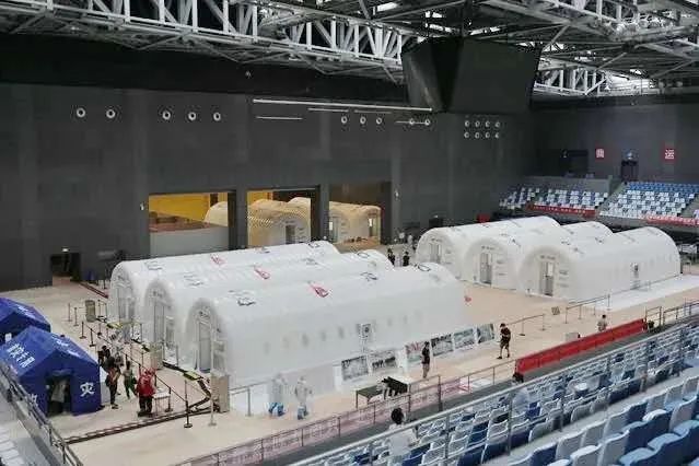 “应检尽检、愿检尽检”北京核酸检测全面铺开后,对检测效率和能力提出了更高的要求,已启动战时机制的北京大兴区政府迅速反应,6月20日中午,中建八局西南公司庞各庄项目接到搭建火眼实验室紧急通知,几十名工友第一时间奔赴大兴区体育中心开工建设。22日清晨,篮球场内3组气膜式核酸检测实验室共计9座气膜仓建成,并于当天完成了设备安装、调试并启动试运营,6月23日正式投入运营。