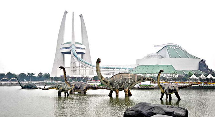 景区简介:环球恐龙城由中华恐龙园、恐龙谷温泉、恐龙城大剧场、香树湾高尔夫会所 、迪诺水镇等旅游景点组成,是江苏的首家“5A”级文化创意类主题景区。常州恐龙园围绕高科技与恐龙主题设置了70余项惊险刺激、引人入胜的游乐项目,分为主题游乐、科技制作、小品观赏、生态表演、趣味游戏等几大类,与博物展示、园林绿化融化一体,不同的游乐项目迎合不同年龄段游客的休闲心态,使来中华恐龙园游玩的客人们仿若穿越侏罗纪时代。
