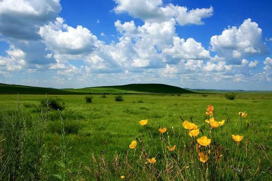 原始的泉河,原始的植被,原始的天空,原始的风味。平坦而又柔软的天然绿茵场,置身其中,有如亲临大海,当人们或乘车或徒步走过的时候,无不被她的美丽所吸引。仰天望去,云在走,鸟在飞;闭眼聆听,鸟儿在鸣叫,羊群在合唱,那已经不是一种声音,而是大自然创作的一首交响乐了。