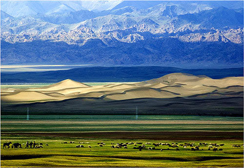 巴里坤草原位于新疆东北部的哈密地区,是新疆的第二大草原。草原上毡房棋布,牛羊遍野,明镜般的巴里坤湖,静静地躺在绿绒绒的大地毯上。