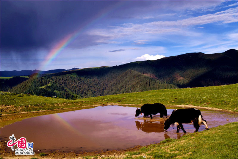新龙丹霞地貌位于青藏高原,其海拔高度达4200多米,是迄今为止全国藏区发现的海拔最高,区域最广的丹霞地貌。新龙丹霞地貌在山涧流水,草茂花繁的衬托下显得更加秀美,具有较高的美学价值和观赏价值。