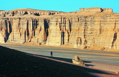 秋日周末,G30连霍高速新疆哈密了墩休息站,不时有游客驱车沿河谷向南,地平线处,隐约可见有一片片如海市蜃楼的雅丹地貌,在那里,有一条使用了上千年的丝绸之路古道——大海道。